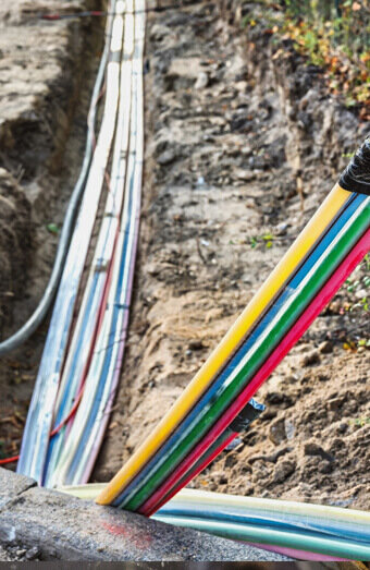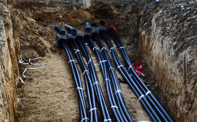 Expert installation of mains cabling from network pillars to metre boxes with correct segregation, depth, and protection in full compliance with distributor regulations.